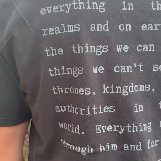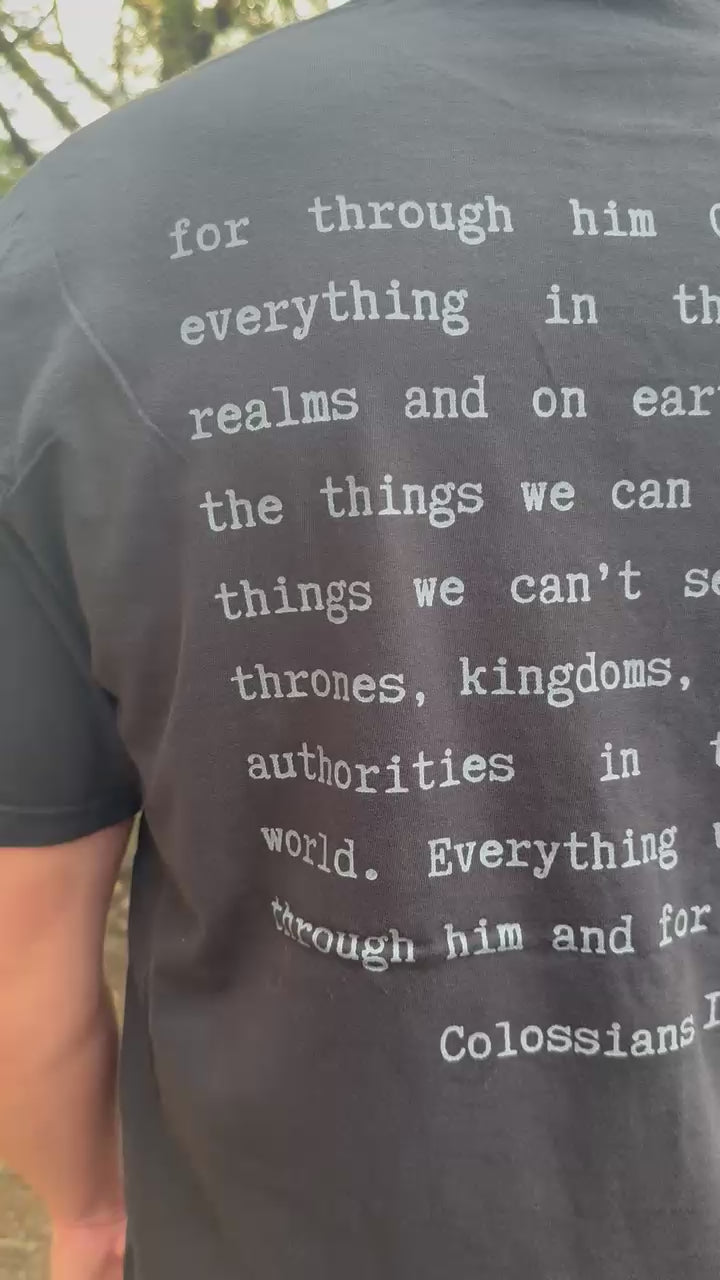 This black men's tee features bold grey lettering with "Heaven Made" across the front, making a strong statement of identity. On the back, it carries the inspiring verse Colossians 1:16, offering a powerful reminder of purpose and creation. Crafted for comfort and confidence, this shirt blends faith and style in a way that speaks both love and boldness.